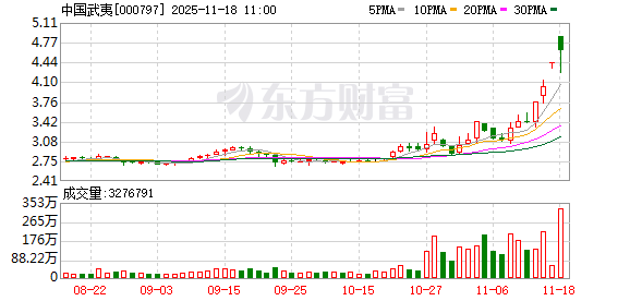 数据宝统计,截至10:05,中国武夷成交额10.35亿元,创2022年12月20日以来新高。最新股价下跌3.84%,换手率14.04%。上一交易日该股全天成交额为2.72亿元。