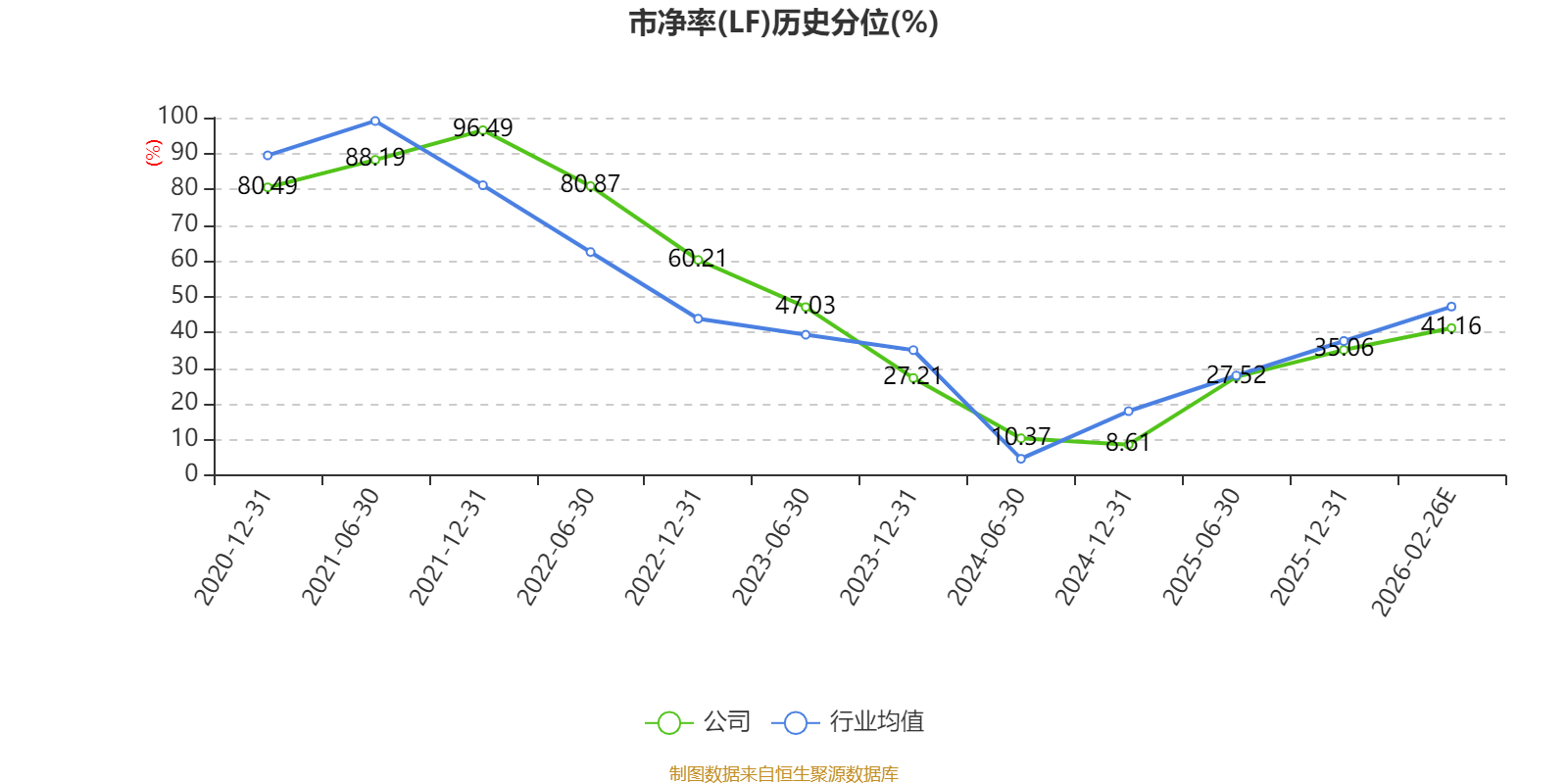 市盈率、市净率为负时,不显示当期分位数,会导致折线图中断。