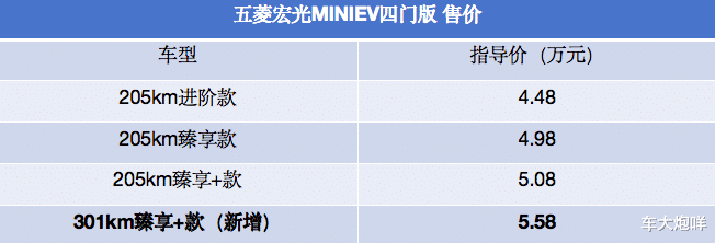 11月11日米升网,笔者从上汽通用五菱官方获悉,五菱宏光MINIEV四门版301km臻享+款现已正式上市,官方指导价5.58万元。现阶段,五菱宏光MINIEV四门版可选4款车型,官方指导价为4.48万元起。